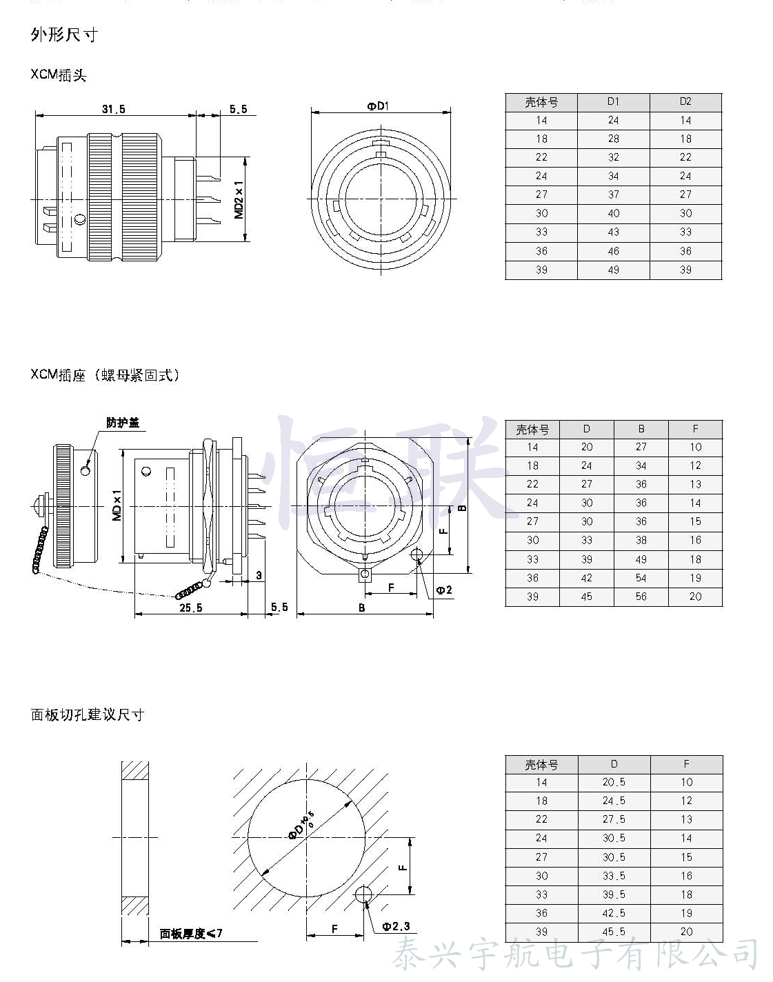 * 等效于XCM系列且同一型號對應插頭座可以互配。