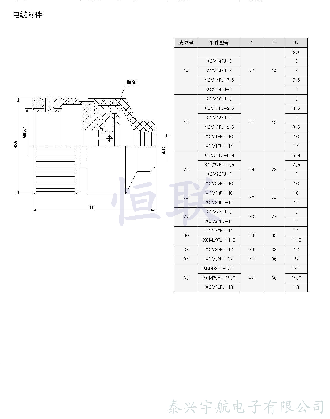 * 配有專(zhuān)用電纜附件(同時(shí)也可配Y55通用附件)