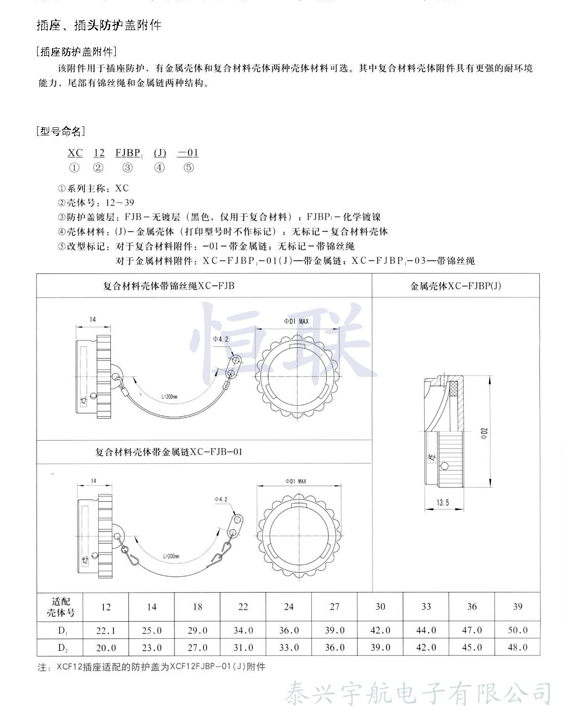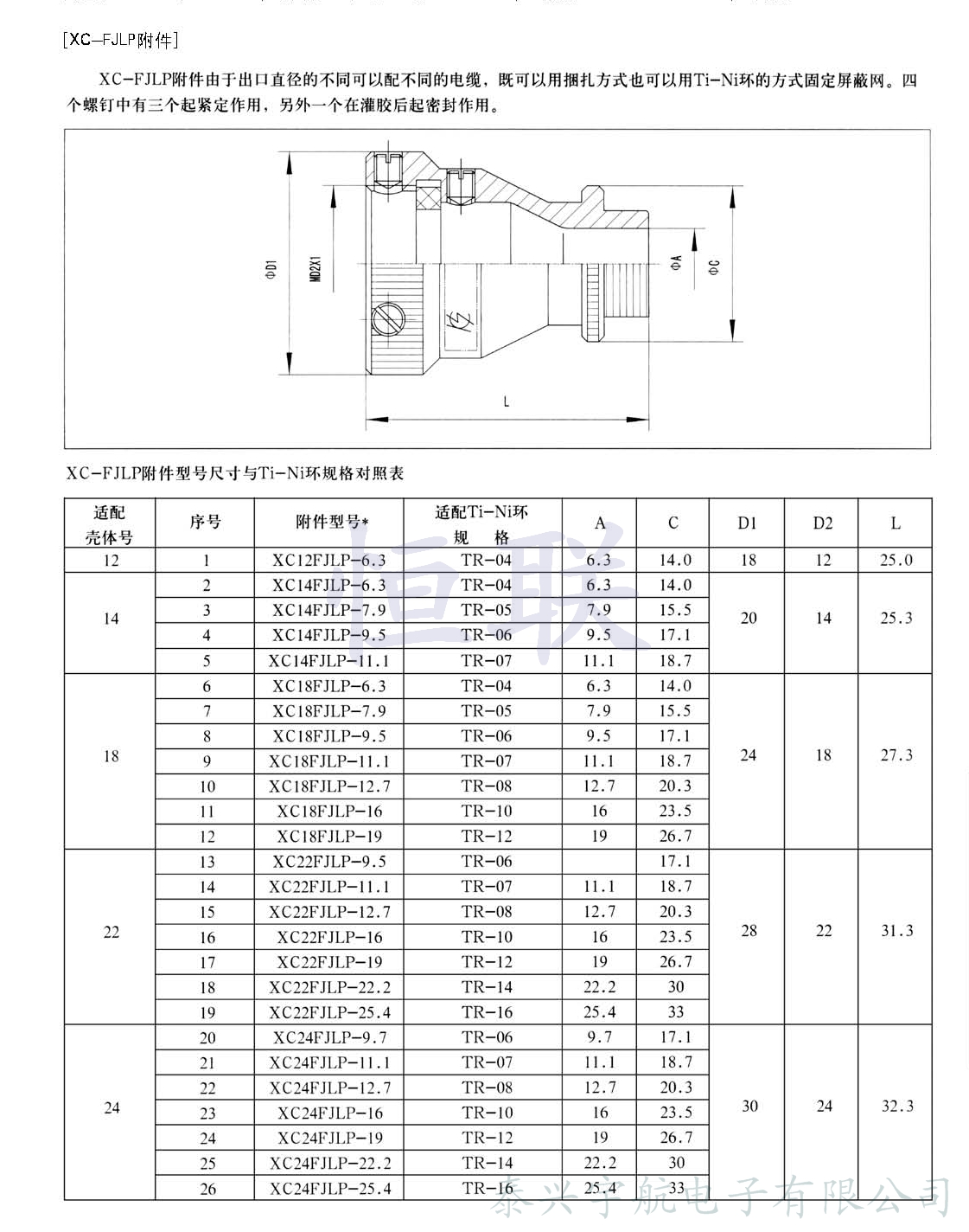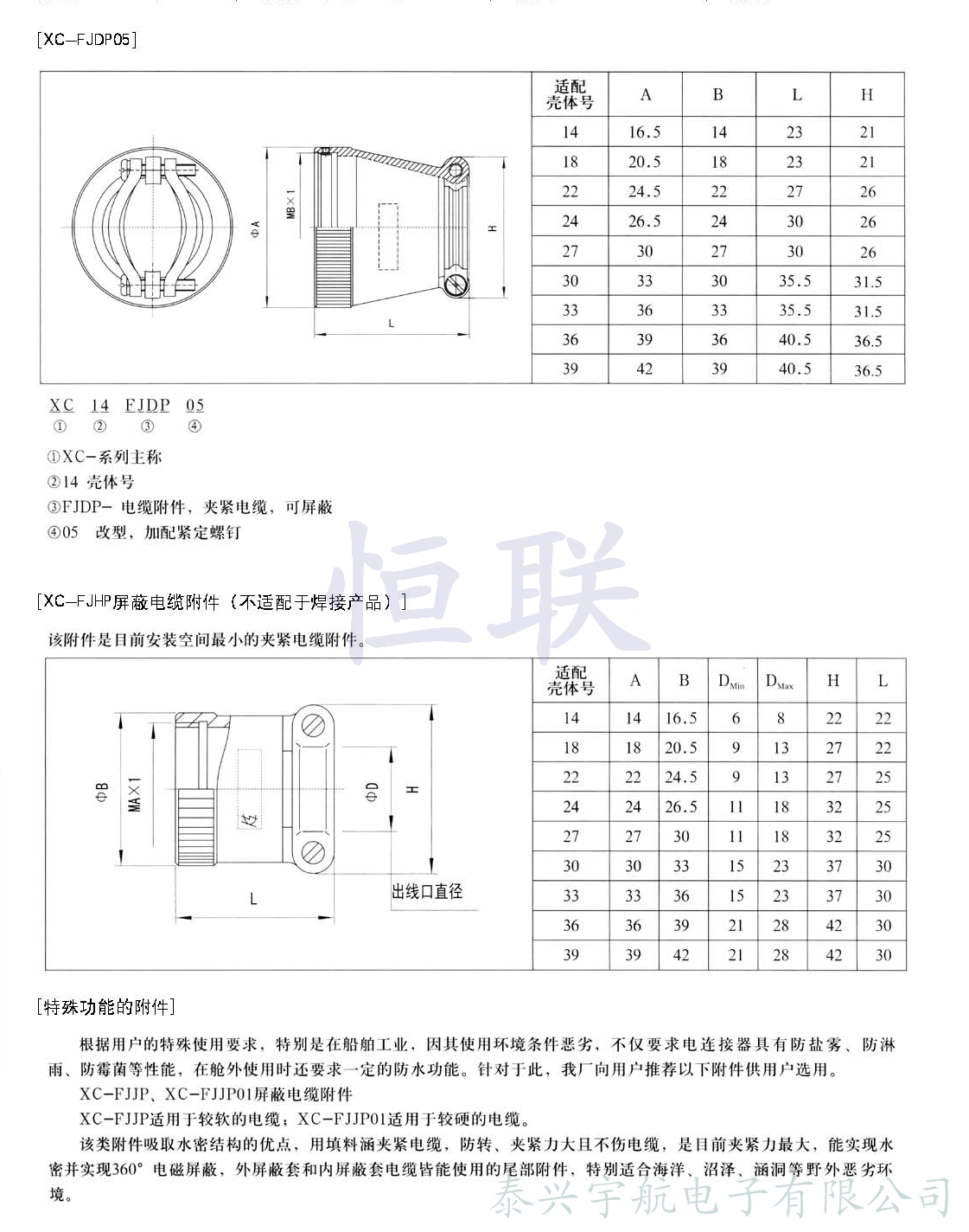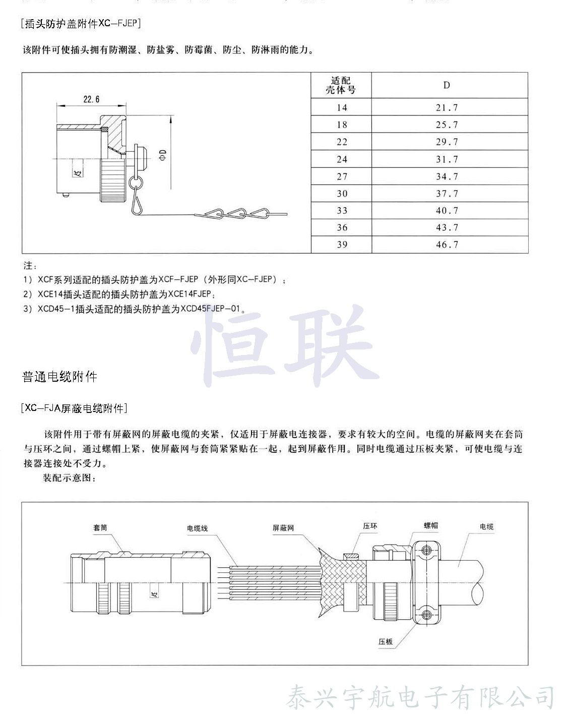 XC系列電連接器除插座、插頭已配直式屏蔽帽及直式彎式電纜夾外,為了擴大XC系列電連接器的使用范圍,方便用戶(hù),還配有下列專(zhuān)用附件,可供使用單位選擇。