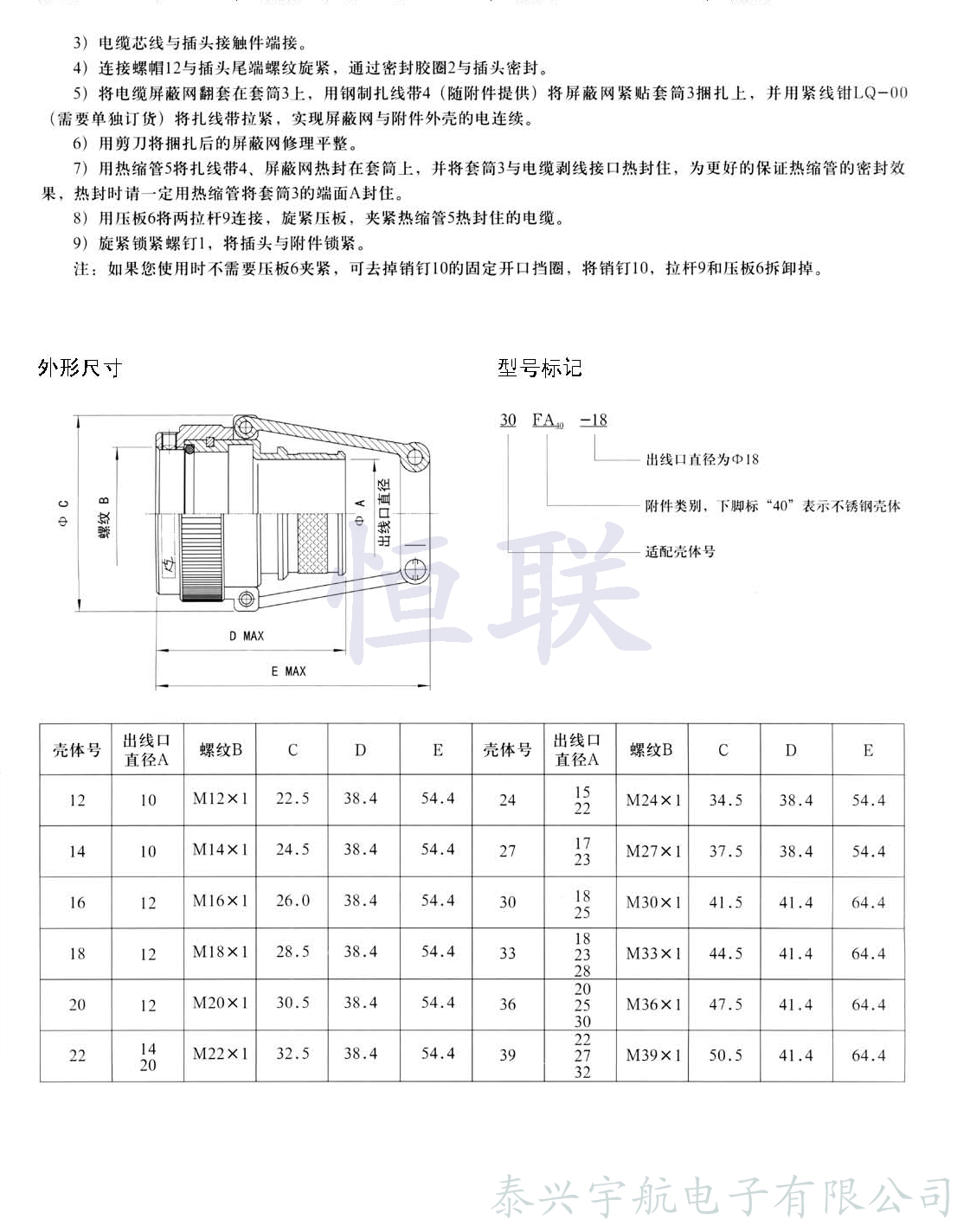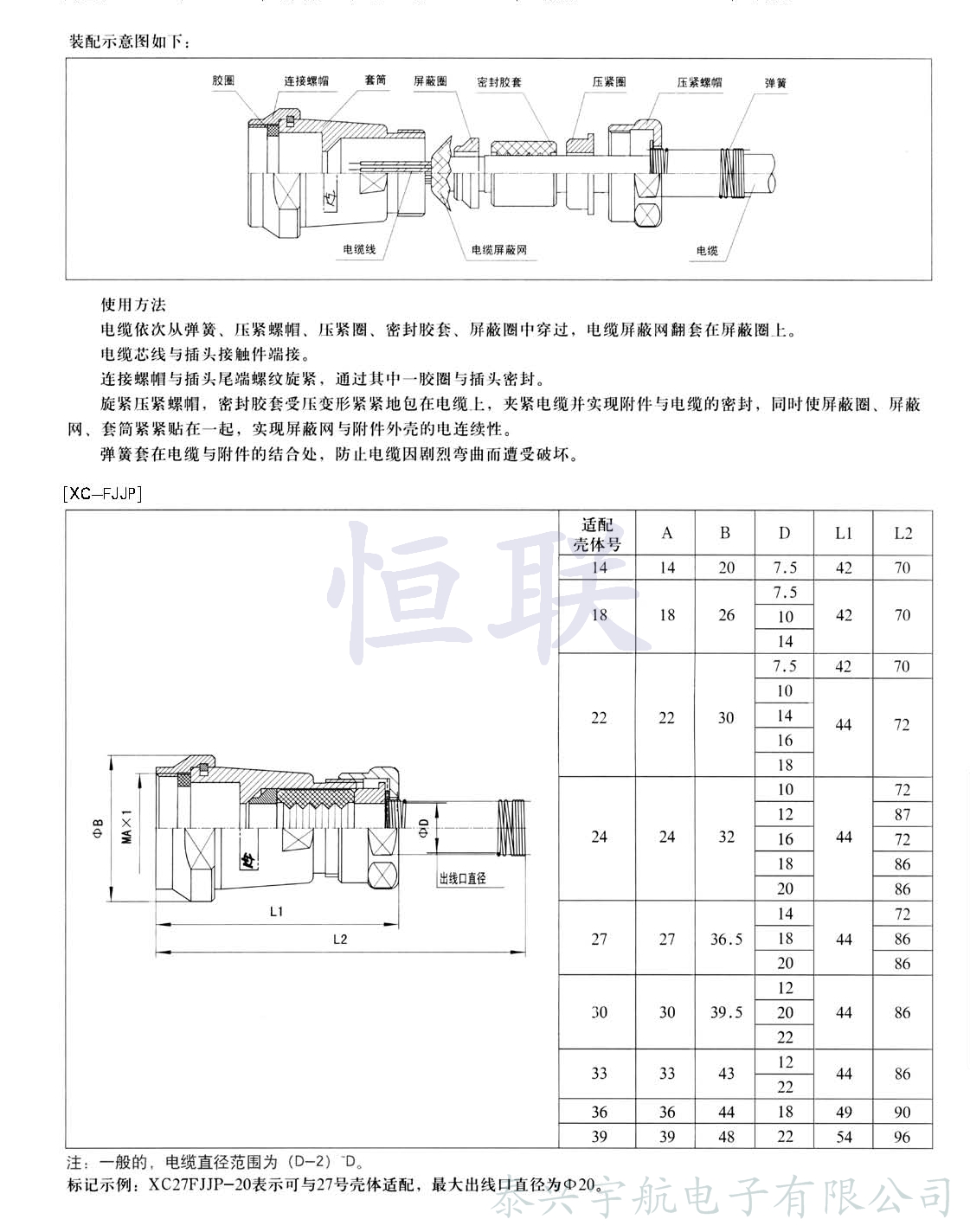 應根據電纜直徑選用本附件。